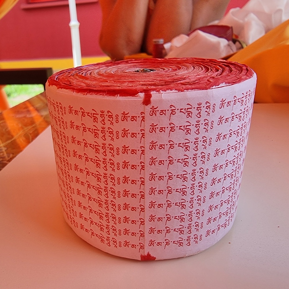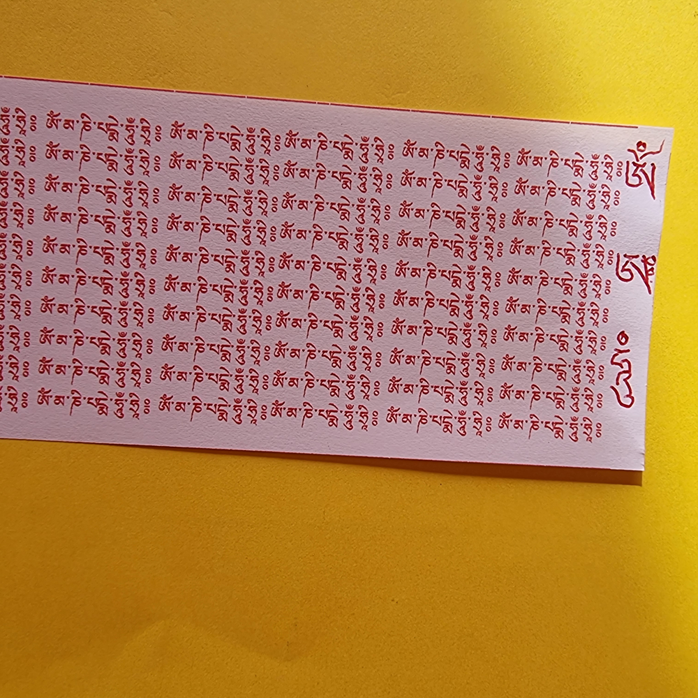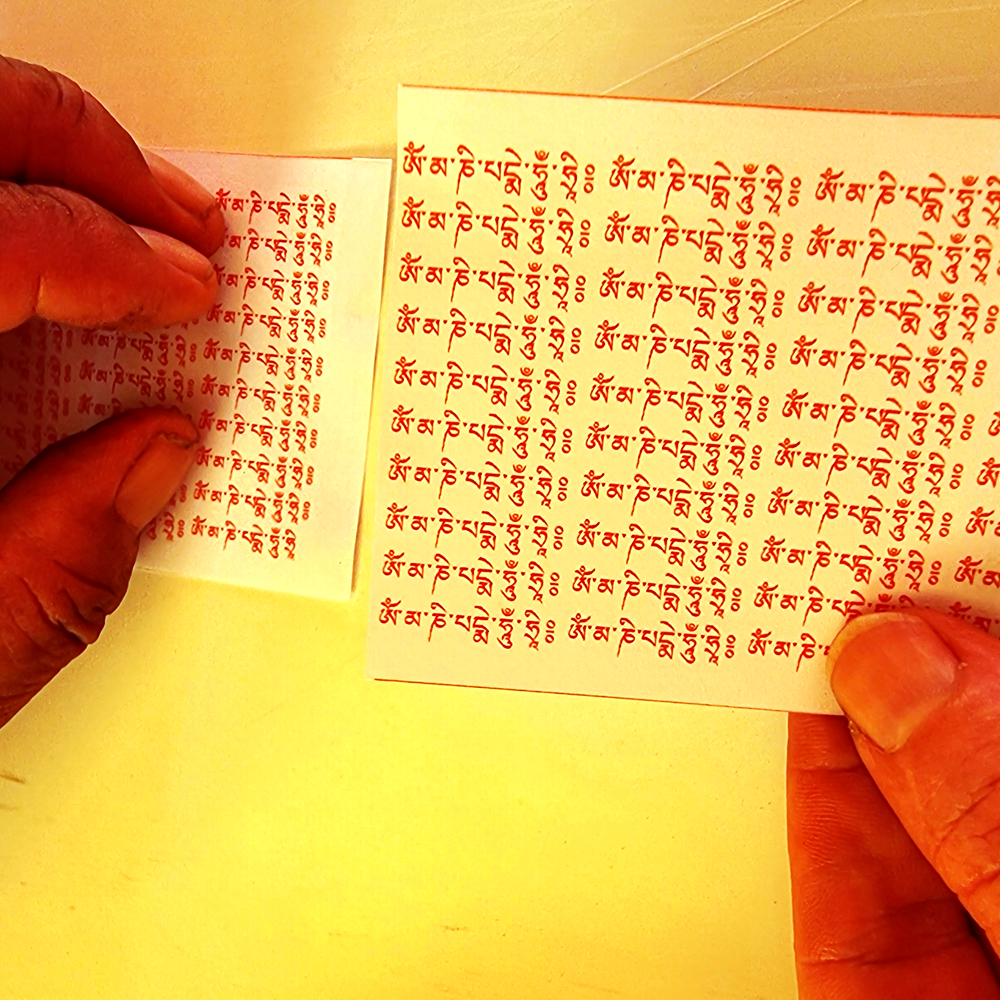 Pendant de très nombreuses années, les moulins à prière ne contenaient que ce mantra. Il constitue le fondement originel de cette pratique et en demeure aujourd’hui encore le cœur essentiel.