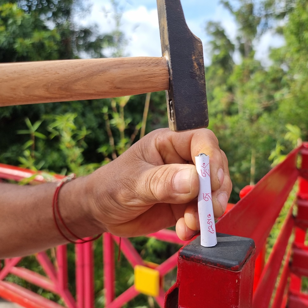 Toutes les explications données ici proviennent de la transmission de Do Kyentse Rinpoché, reçue auprès de son père, Lama Kunmon, reconnu comme un grand expert dans la fabrication traditionnelle des moulins à prière. Tout ce qui va suivre s’inscrit donc dans cette transmission. Cette rigueur s’explique par le fait que la fabrication d’un moulin engage une grande responsabilité, car la moindre erreur, même minime, est ensuite répétée à chaque tour du moulin, et ses effets s’accumulent dans le temps. C’est pourquoi cette méthode insiste autant sur : la justesse des mantras, leur orientation correcte, la qualité des matériaux, la précision des gestes et l’état d’esprit de la personne qui fabrique.