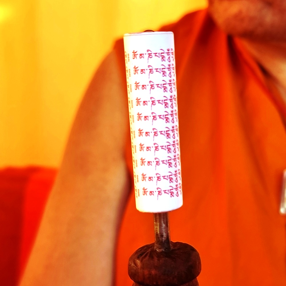 Le premier moulin à prière contenait uniquement le mantra Om Mani Padme Houng, le mantra du Bouddha de la Compassion, Avalokiteshvara (Chenrézi). C’est avec ce mantra que la pratique a commencé.